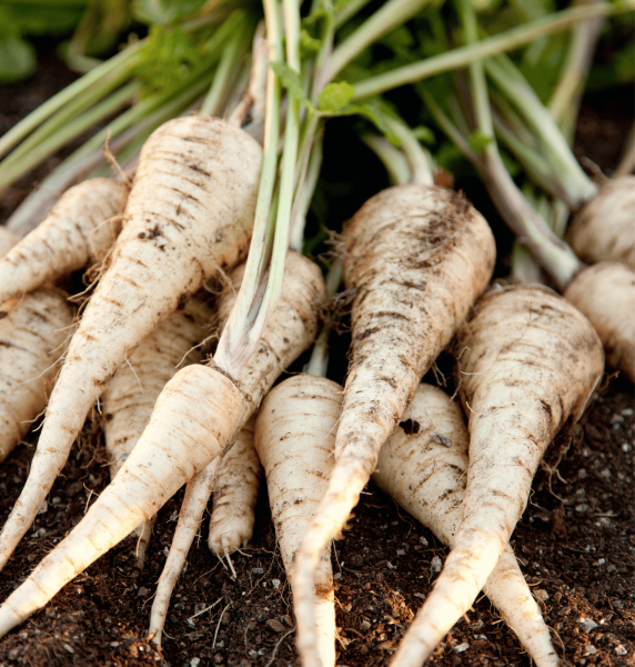 When you grow your own Parsnip you will suddenly realise that what you have tasted elsewhere, is not a Parsnip. Parsnips grown in our highland climate, particularly the ones exposed to frost have a sweet delicate flavour. They are perfect of soups, curries and casseroles but if your really want to enhance its beautiful flavour roasting is the only way.