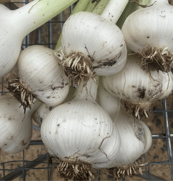 HARVEST: Spring, remove the Scape (flower head). Harvest when three leaves have turned yellow.